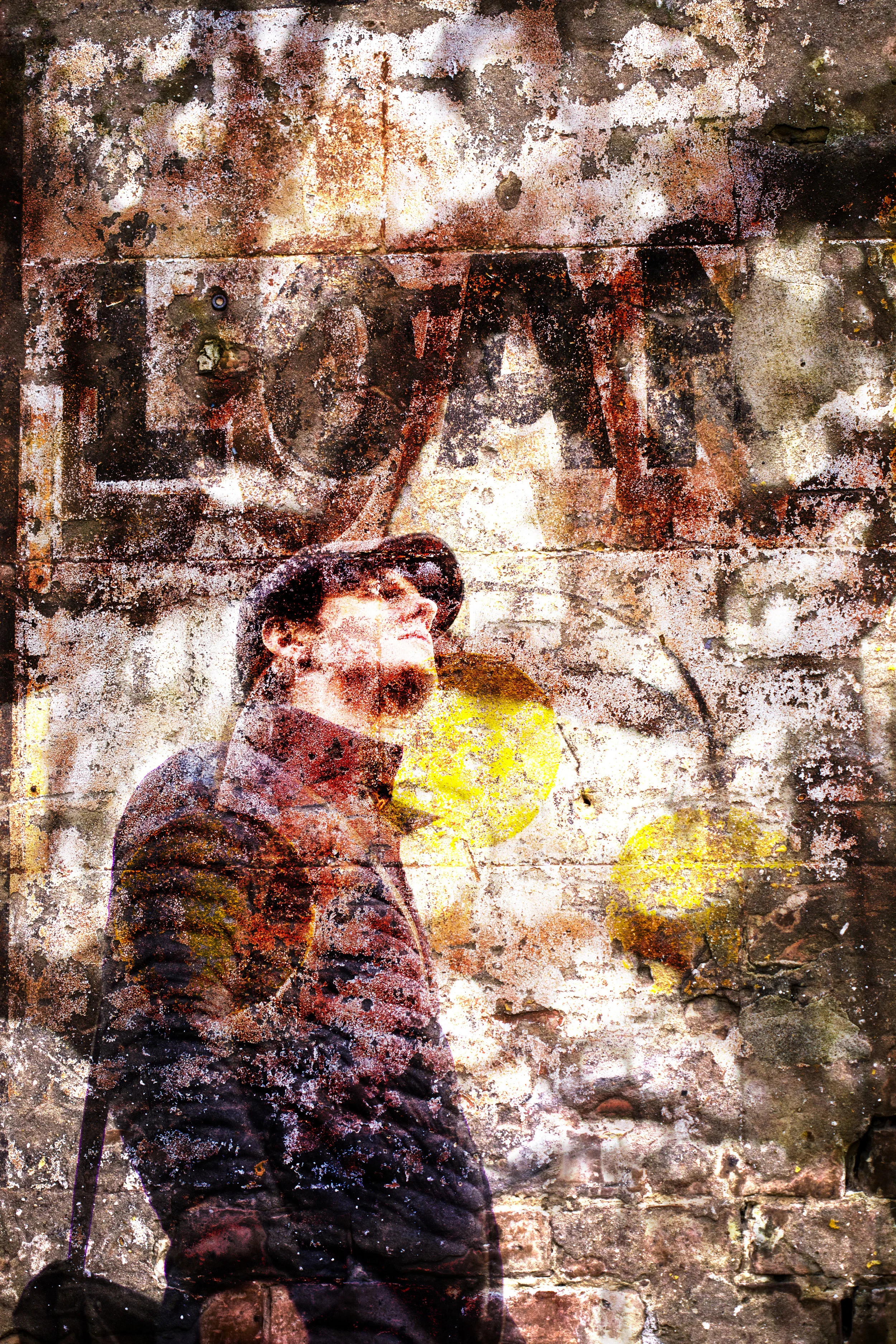 A mash up of an old painted sign on a brick wall and a photo of Vincent at the #Savannah Historic Waterfront. Super cute place with great musicians, food and dessert at the Candy Factory. Yum!