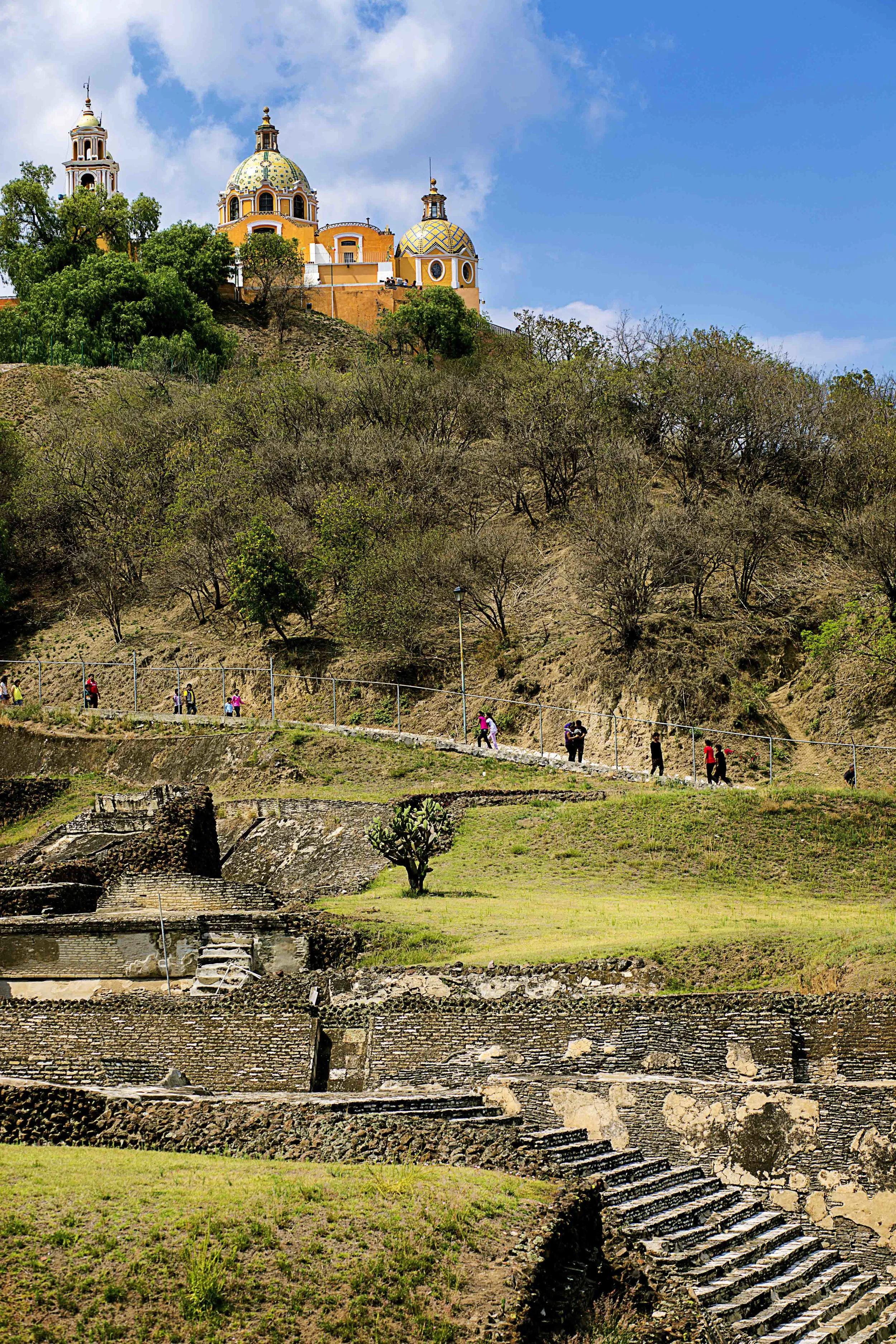 As Cortez made his way to Tenochtitlan during his conquest, he stopped in the very important trading city of Cholula where it's main pyramid was destroyed and a church was erected in it's place. Its remains still stand and only a portion of it has been excavated. It is the largest pyramid by volume in the Americas, so large that tunnels have been found underneath.