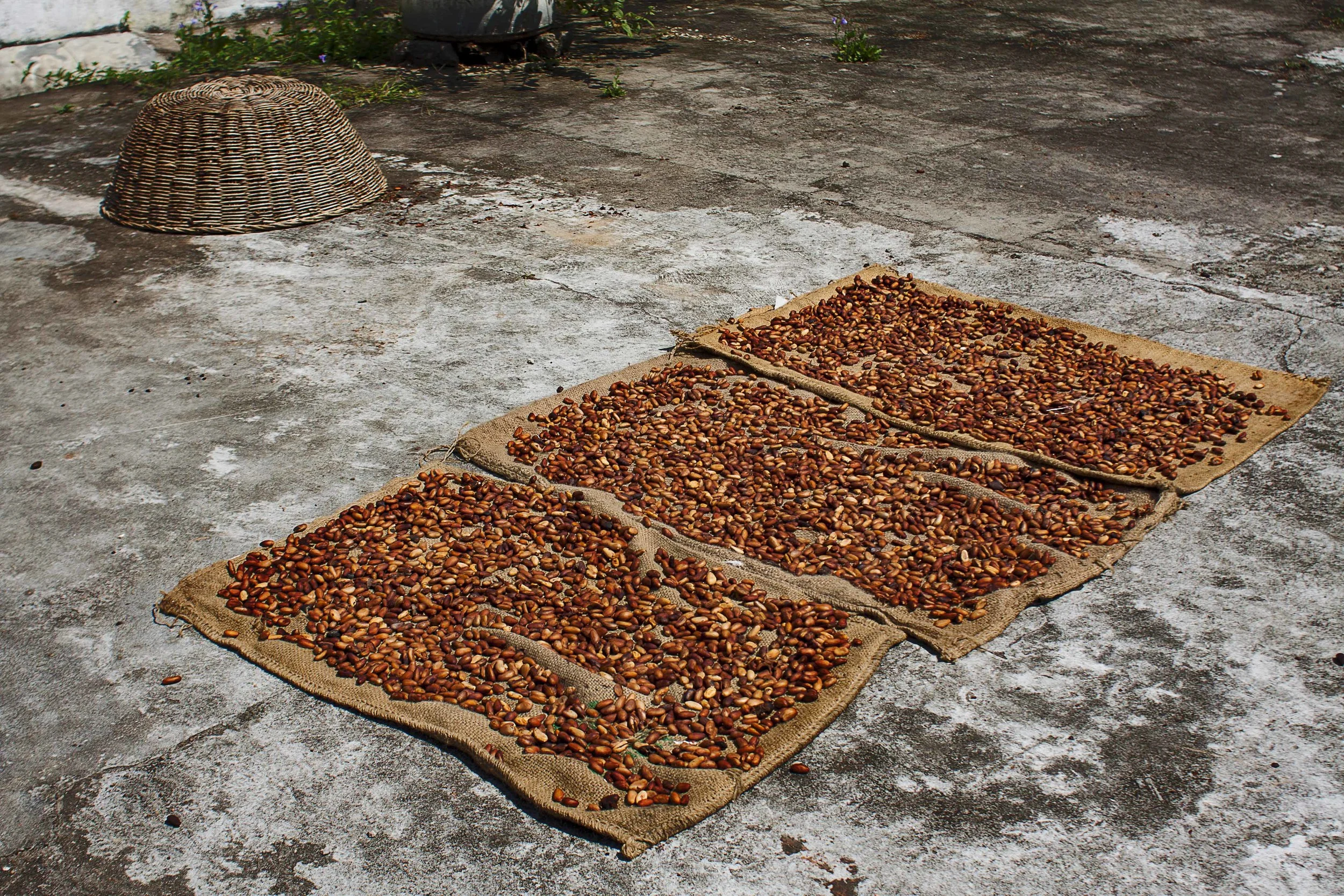 Cocoa beans are being sun dried before they get roasted and turned into xocolatl. We learned of the amazing process starting from the micro-ecosystem the trees grow in, to tasting the sweet gooey pulp inside the pods, roasting the beans and finally to tasting the final product -- Mexican grown and produced xocolatl with no sugar or milk needed.